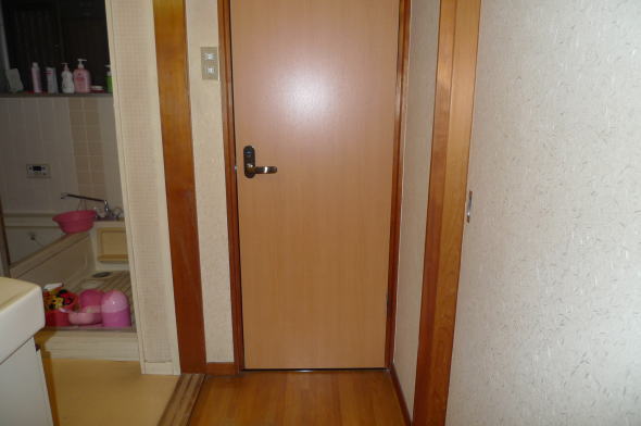今までトイレのドアに灯取りがついてなく,暗いし誰か入っていてもわからないからっと困ってみえました。お客様と相談して少し大きめにしました。敷居を撤去することで廊下と同じ高さになりました。