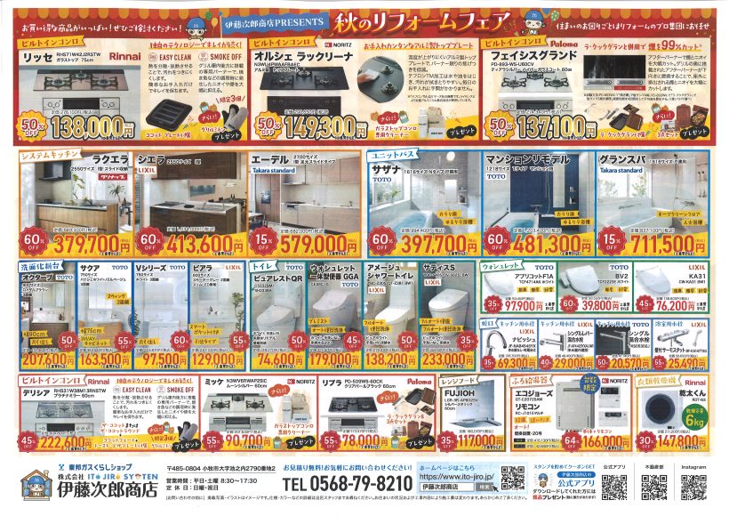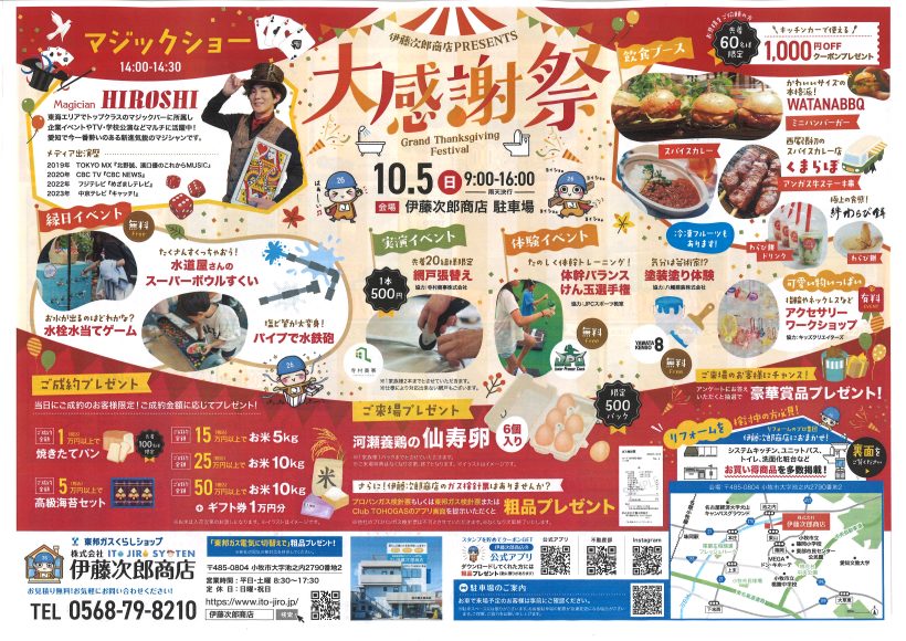 10月5日(日)大感謝祭 ご協力いただける会社様のご紹介です。 いつも、ありがとうございます!!! (順不同) リンナイ様、ノーリツ様、パロマ様 TOTO様、LIXI…続きを読む