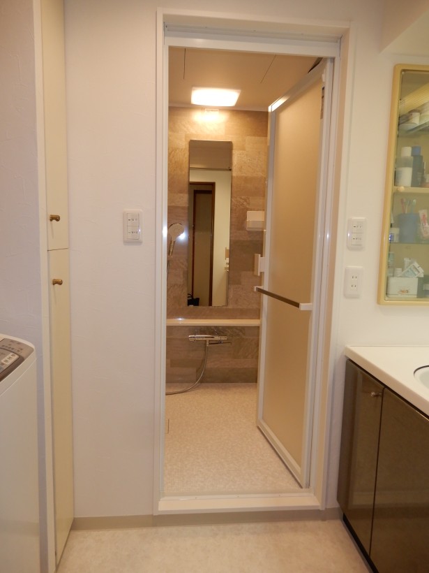 マンションの4Fで浴室と洗面所の換気扇が壊れたのを機に,浴室と洗面所のリフォームをさせて頂きました。TOTOさんのマンションリモデル1317.Tタイプです。