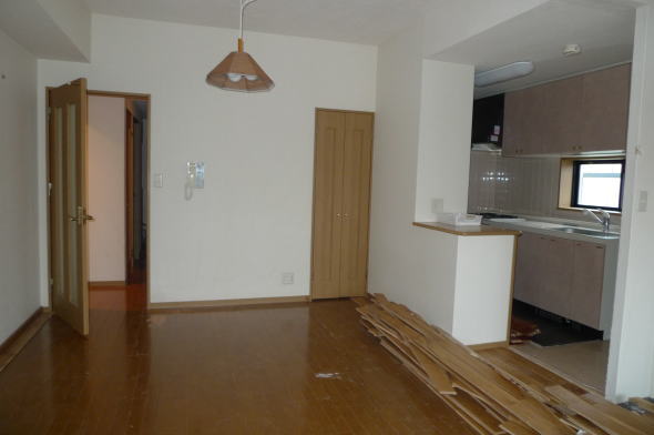 前の住人がフローリングの上にフローリングを釘で止めず置いてありましたが全て撤去しフローリングを張替えしました。