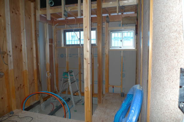 納戸を屋外へ910mm出して浴室,トイレを取付しました。